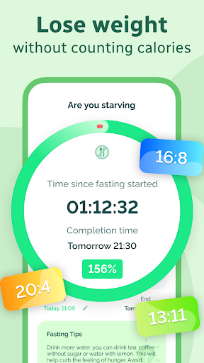 The fasting tracker will help you lose weight without counting calories, just mark the beginning and end of fast.