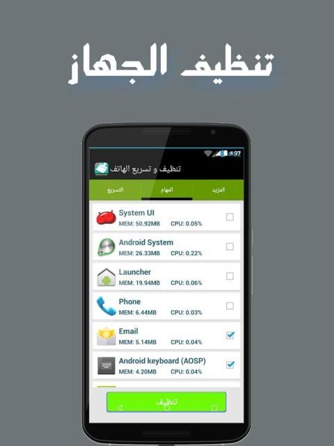 Paglalarawan ng تنظيف و تسريع الهاتف