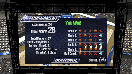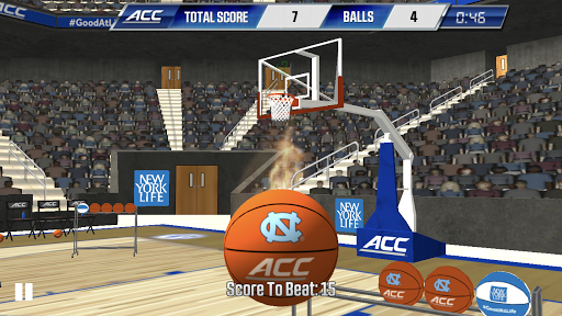 Maligayang pagdating sa unang kailanman kolehiyo basketball shooting app! Piliin ang iyong mga paboritong paaralan ng ACC at makipagkumpetensya bilang kanilang nangungunang marksman mula sa likod ng linya sa tatlong punto ng pagbaril ng mga paligsahan.