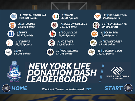 Para sa bawat punto puntos ka, New York Life ay makakatulong sa mga lokal na lalaki at batang babae club ng iyong paaralan . Ang kumpetisyon sa kabuuan ng kumperensya ay magpapainit habang ang mga tagahanga ay nakikipaglaban dito kung saan ang club ay makikinabang sa karamihan!