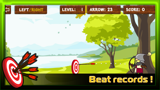 Start tournament, shoot at the targets and earn points. If you find yourself in the center, you get an extra arrow.