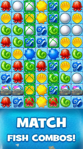 • Gumawa ng tugma 3 libreng pangingisda laro o mag-swipe tangke ng isda sa isang linya upang crush at alisin ang mga ito