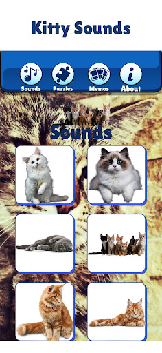 Idinisenyo para sa mga wala pang 6 taong gulang na mga bata. Gameplay ay simple at masaya kundi pati na rin pang-edukasyon, na angkop para sa mga batang bata - pindutin ang screen upang i-play ang mga tunog ng pusa o kitty pagkatapos ay tumutugma ito sa tamang larawan. Ang laro ay may iba't ibang mga antas tulad ng madali, mahirap, at napakahirap.