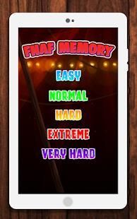 Memory FNAF Horror Games is a puzzle game for android users to improve memory. It is a fun game with memory building activity like in each level, player is required to tap the square buttons and need to memorize what is behind it, in order to match its pair. Keep matching objects and complete this memory exercise in minimum time & clicks.