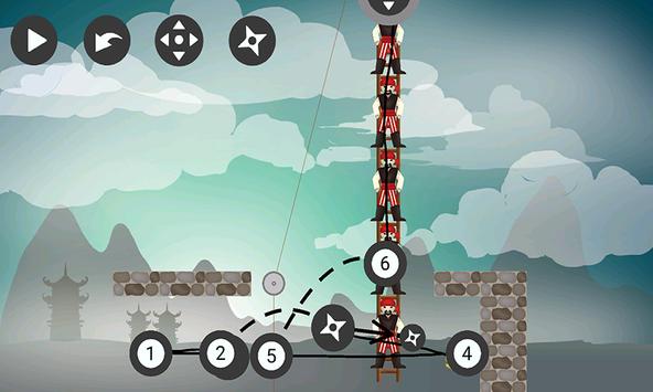 Attack:Drag onto Path where Ninja should throw Ninja Stars.Drag black end to set angle.