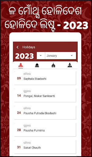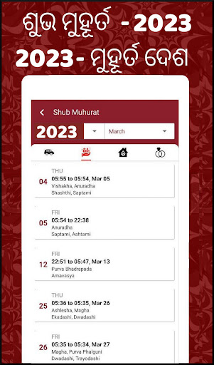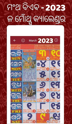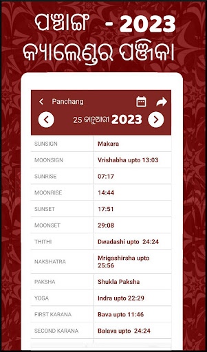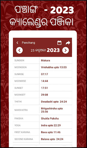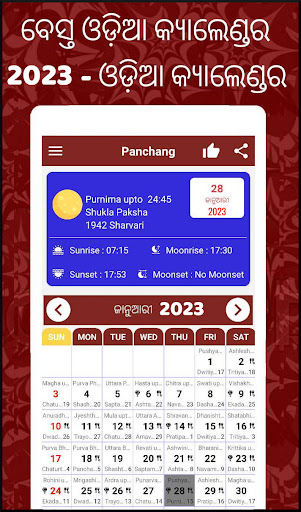 ● Single app na may 2023 at 2023 taong kalendaryo at panchang para sa orissa na nagsasalita ng mga tao na si Odia Panchang 2023