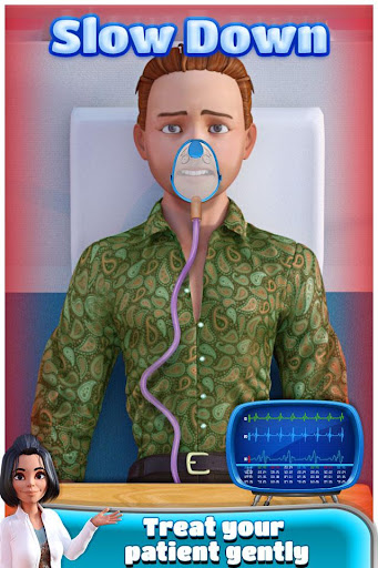 Mayroong isang matinding emerhensiya at ang isa sa pasyente ay may matinding sakit sa kanyang kaliwang bahagi ng katawan. Rush siya sa pinakamalapit na ospital at i-diagnose ito. Lumilitaw na atake siya sa puso. Dumalo sa pasyente at magsagawa ng isang bukas na operasyon sa puso sa pamamagitan ng pagsunod sa madaling isa-isang mga hakbang at pamamaraan. Paghahanap para sa monitor ng rate ng puso at tingnan ang grap ng puso ng tao nang naaayon.
