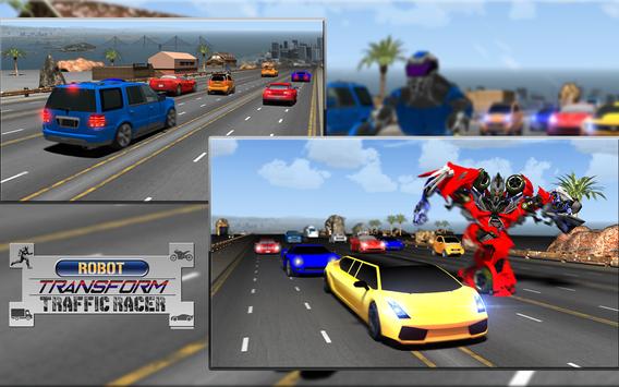 Your mission is to dash between traffic as a traffic racer and jump, swift between traffic. You can transform into a bike and then race as a furious traffic rider between the traffic on city. You can transform into a sports car and also your robot transform into truck, race, drift, and shift between the fast traffic of highway. You can also transform into a huge truck and take advantage of its smooth control and race between the traffic.