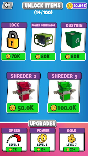 Pinagpalit ang lahat sa pamamagitan ng ito ng malakas na shredding sim na binubuo ng grupong blading ng shredding. Makakakuha ka ng maraming bagay upang mapuslit. Real shredding pisika na kung saan ay nasiyahan ka ng maraming. I-upgrade ang iyong shredding machine para sa mabilis na pinsala, mas maraming kapangyarihan at gantimpala.