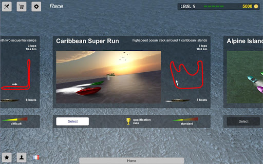 Take a introduction in tutorial and gather additional experience in practice with your coach. Your first race can start very soon. Collecting your win bonus enables you to upgrade your boat and be competitive in higher league levels.