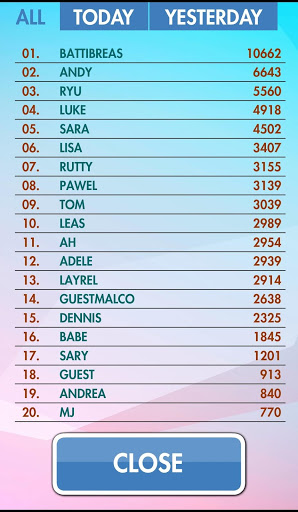 Ang iyong iskor ay depende sa iyong bilis at bilang ng mga pagkakamali na iyong ginagawa. Mayroon ding isang pangkalahatang iskor = kabuuang iskor mula sa lahat ng mga laro na iyong nilalaro, kaya mas maraming beses mong i-play = mas mahusay na iskor makakakuha ka!