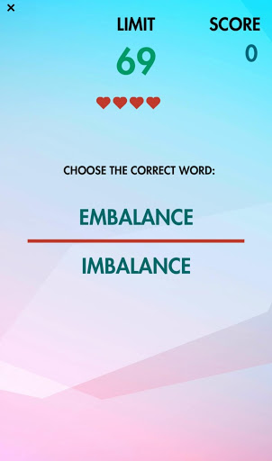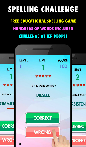 Magkakaroon ng isang salita Sa isang screen at ang iyong gawain ay upang magpasya kung ang salita ay spelled tama o hindi! Dapat mong sagutin nang tama ang isang bilang ng mga salita na katumbas ng "limitasyon" na numero sa tuktok ng screen upang umunlad sa susunod na antas! Mag-ingat, maaari kang gumawa ng mga pagkakamali ng max 5 sa bawat antas. Panoorin din ang limitasyon ng oras na ipinapakita sa ilalim ng salita. Kung nawala mo ang antas, maaari mo itong i-play muli (max tatlong beses) mula sa antas na nabigo ka, kung hindi man ay kailangan mong magsimula.