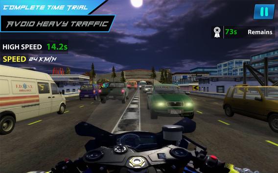 Select a bike from collection of real sports bikes, off-road bikes, motorcycles, chopper motorcycles, modified high speed motorcycles, moto. Select a racing arena from racing tracks of highway, city streets, formula tracks- 1 track provided. Ride your moto and avoid traffic. Use bike nitro for ultimate speed. The traffic X rider can control his bike through motion sensor and on screen touch buttons during real endless racing in traffic. As real rider of motorcycles, the racer will have to show his skills of racing in real time traffic containing cars, bikes, trucks, jeeps on racing tracks. Beat the traffic and ride your moto like a pro rider of fast motorcycle racing game.