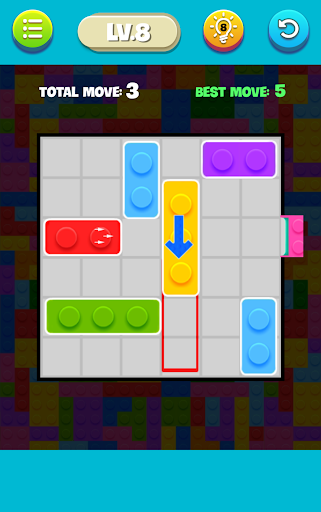 Move The Brick Out is a simple and addictive puzzle game. The aim of the game is to unlock the red block in the palette by sliding other blocks out of the palette, unlocking with the least amount of moves. Move The Brick Out has 7 levels of difficulty ranging from Basic to Expert. A total of 590 puzzles, the highest number of puzzles you see in any game, worth hundreds of hours to help you feel challenging and addictive.
