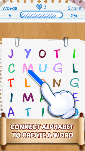 Correct swipe the letters horizontally, vertically, diagonally, forwards or backwards to form a specific hidden word. Find as many words as possible to unlock levels.