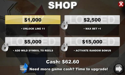 Ton ng Unlockables! Gamitin ang iyong mga panalo upang bilhin ang lahat ng 28 item sa shop upang i-unlock ang karagdagang mga tampok ng laro. I-unlock ang random na bonus trigger upang manalo ng pagkakataon upang ma-trigger ang isang laro ng bonus sa bawat spin. I-unlock ang mga karagdagang paylines, mas mataas na mga taya ng max, at mga halaga ng kredito. I-unlock ang nadagdagan na pagkakataon ng bonus. I-unlock ang dagdag na libreng spins. I-unlock ang dagdag na mga simbolo ng bonus. Ang listahan ay napupunta!