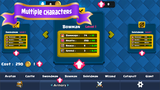 -Multiple character: Archer, Shield Man, Wizard, Giant, Catapult, Avatar, Swordsman, ...
