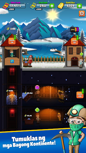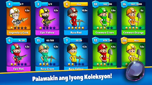 Kahit na offline ka sa idle mining game na ito, patuloy na maghuhukay ang iyong mga minero at patuloy kang kikita ng cash at ginto!