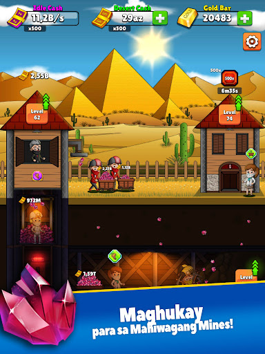 Mag-explore ng dose-dosenang iba't ibang minahan at palawakin ang iyong kaharian! Ipadala ang iyong mga minero sa pinakamalalim para sa pinaka mahiwagang mga minahan!