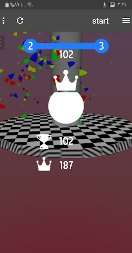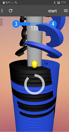 Press and hold the screen and let the ball go down without touching the obstacles! Hold for as long as possible to make combo and break the black blocks. Let the ball fall off the spiral stacks.