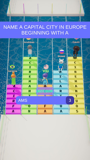 Maramihang mga character makipagkumpetensya sa pamamagitan ng pagpasok ng mga katanungan upang magdagdag ng mga parisukat upang bumuo ng mga tulay, sa bawat titik na naaayon sa isang parisukat.