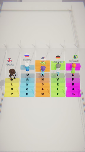 Ang higit pang mga titik na ipinasok mo, mas maraming mga parisukat na maaari mong itayo sa isang pagkakataon.Ang unang tao na maabot ang natapos na linya ay nanalo.