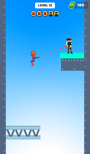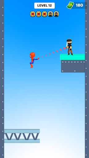 Sa ganitong kapanapanabik na mobile hyper-casual na laro, isinasagawa mo ang papel ng isang bayani na stickman na pinagkadalubhasaan ang sining ng pagbaril sa mga web at teleporting sa iba't ibang mga lokasyon.Gamit ang iyong mapagkakatiwalaang mga kakayahan ng spiderweb-shooting, dapat kang mag-navigate sa isang serye ng mga mapaghamong mga hadlang at sirain angAng iyong mga kasanayan bilang isang master stickman.Kailangan mong maging mabilis sa iyong mga paa at madiskarteng sa iyong mga paggalaw kung inaasahan mong gawin ito sa pagtatapos ng bawat antas.Mga kakayahan upang mag -swing mula sa platform hanggang sa platform at maiwasan ang mga hadlang.Maaari mo ring gamitin ang iyong mga kapangyarihan sa teleportation upang mabilis na lumipat sa paligid ng mapa at umigtad na pag -atake ng kaaway.