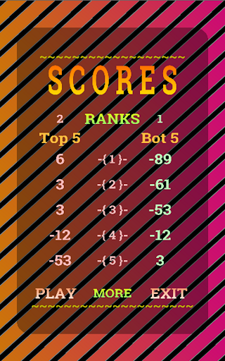You also have bonus chances (that means you don't loose a chance) with every " 10" or a "-10" that you score. But if you hit a "0" you lose two chances. That's the fun part.