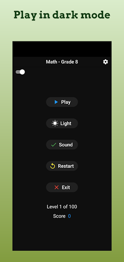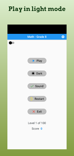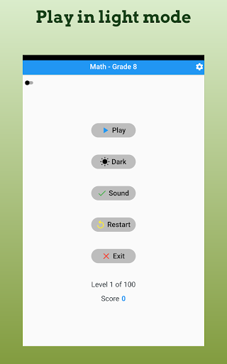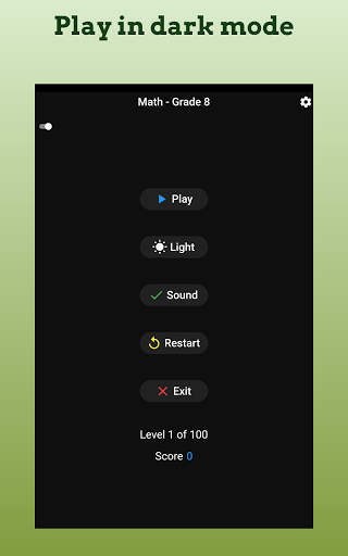 Hamunin ang iyong isip sa antas ng antas ng ika -8 na baitang at tingnan kung saan ka tumayo.Mayroong 100 mga katanungan/antas na binuburan ng ilang mga kagiliw -giliw na mga puzzle sa matematika sa pagitan.Lumikha at magbahagi ng isang sertipiko ng iyong pangwakas na marka.Hamunin ang iyong mga kaibigan at pamilya upang makita kung sino ang maaaring puntos ng higit.