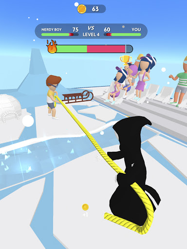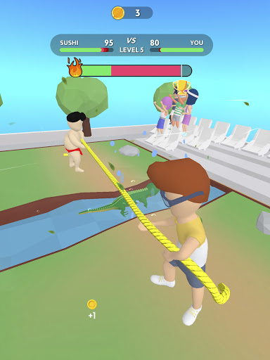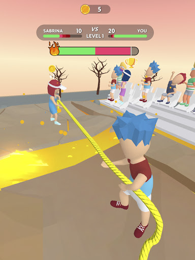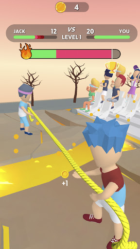 Kumita ng mga barya sa pamamagitan ng panalong mga laro o sa pamamagitan ng panonood ng mga video. Maaari kang maging ang Ultimate Tug War King?