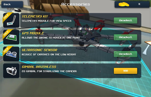 A physically accurate model of the drone involves damage of varying severity. Prevent your drone from contact with obstacles. A lifelike drone behaviour and destruction of its individual parts in the crash. Repair and buy different spare parts for boosting characteristics of the drone.