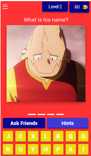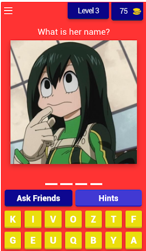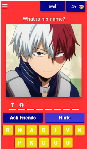 In this game all you have to do is guess character names from My Hero Academia. It has over 50 levels, and many popular characters that you may or may not know the name of!