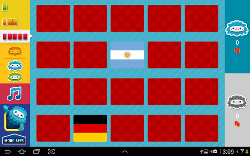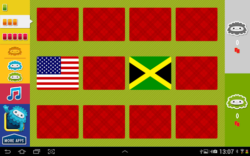 Isang klasikong laro ng lahat-oras na paboritong card na idinisenyo para sa mga bata.Ang mga bandila ng mundo ay nakaharap sa screen, pumili ng isang card at itugma ito sa isa pa!Gamitin ang iyong memorya upang mahanap ang lahat ng mga pares.3 mga antas ng kahirapan at pagpipilian ng 2 manlalaro.Ang mga batang bata ay nagpapatupad ng kanilang mga kapangyarihan ng konsentrasyon habang nagsasaya.Gaano kahusay ang iyong memorya?
