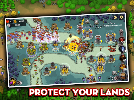 Galugarin ang mga bagong lupain sa tower pagtatanggol laro. Tower Defense - Hari ng Legend ay makakatulong sa iyo na makaranas ng mga kahanga-hangang lupain tulad ng grasslands, deserts, lava land ... na may higit sa 45 mga antas upang lupigin. Tandaan, ang bawat lupain, ang bawat antas ay magkakaroon ng iba't ibang makapangyarihang monsters ... Kailangan mong gamitin ang iyong diskarte upang makuha ang pinakamahusay na mga resulta para sa labanan na ito.