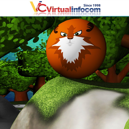 Game ng mga bola. Tumingin ng mga paggalaw ng 3D. Panoorin ang mahusay na soro na may Lion at Mighty Rhino
