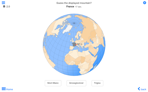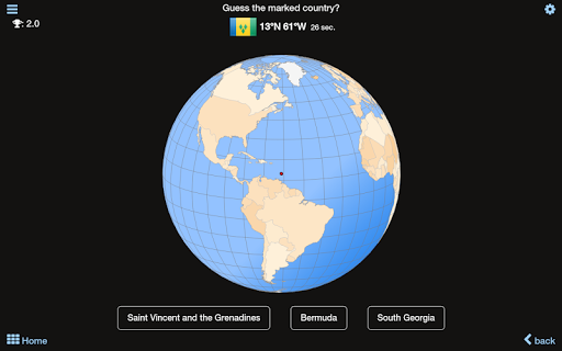 • Hulaan ang naka-highlight na bansa sa virtual globo
