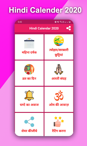 Bu uygulama Hintçe'de 2020 takvimi var.it, 2020'de de tüm tatilleri ve Hintçe'deki bazı aartislerin toplanmasını sağlar.