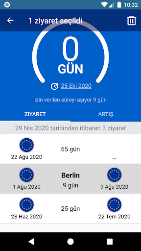 Bu uygulamadaki tüm hesaplamalar "90 gün / 180 gün" kuralına: