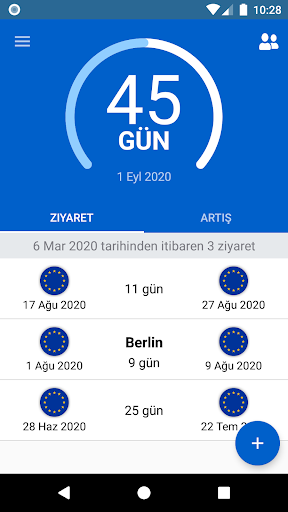 İzin verilen kalış süresinin hesaplanmasının yanı sıra, bu 90 günlük hesap makinesi seyahatlerinizin geçmişini (hesaplamalar için gerekli), bir sonraki seyahatinizin süresini ve tarihlerini saklamanıza, sınırı geçerken uygulamada otomatik olarak pullar oluşturmanıza, durumda bilgi almanıza olanak tanır fazla kalmak, birkaç kullanıcı profilini yönetmek.