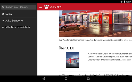 A.T.U şimdi A.T.U Dünya'dan en son haberleri doğrudan akıllı telefonunuza getiriyor.Burada, A.T.U, İşler ve Kariyer, en yakın şubenin konumu ve çok daha fazlası hakkında bilgi bulacaksınız.Şimdi A.T.U ile ilgilen ve sahnelerin arkasında ve 1 numaralı ana atölye hakkında daha fazla bilgi edinin.Çalışanlar için, giriş alanında ek bilgi ve hizmetler vardır.