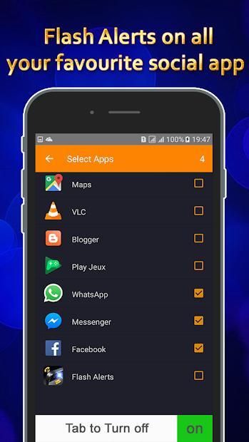 Notification for all App - You can select app to enable flash alerts for. - All app is supported