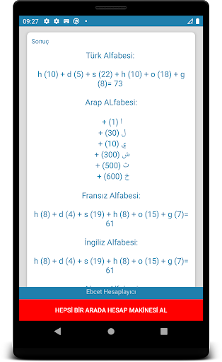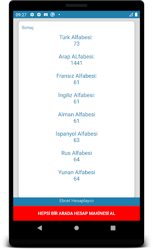 Bu bedava uygulama ile kelimelerin sayısal değerlerini rahatlıkla hesaplayabileceksiniz. Şimdilik sadece 4 tane dili desteklemektedir. Türkçe, İngilizce, Almanca ve Fransızca. Eğer hata vb ile karşılaşırsanız lütfen benimle e-mail yoluyla irtibata geçiniz.