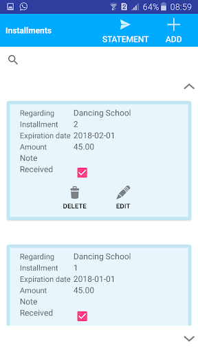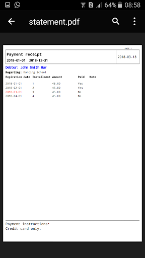 It works like this, you register your customers and installments to receive, then when you receive the payment you give the low, and you can send a payment statement to your customers.