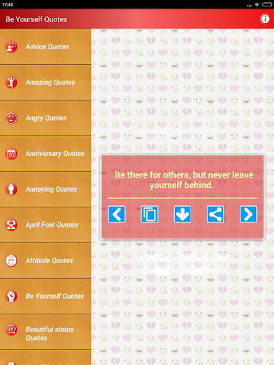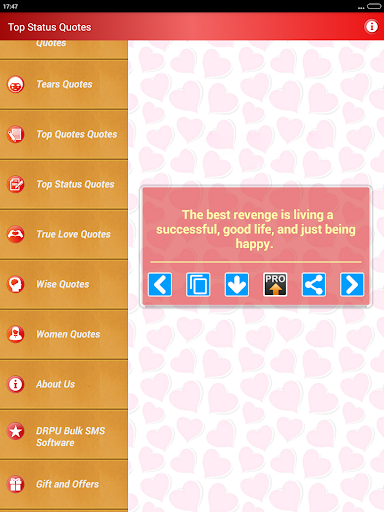 Sadece tek bir musluk alır ve P yapabilirsinizBu alıntılar, Facebook Twitter Instagram LinkedIn gibi herhangi bir sosyal medya web sitesine veya WhatsApp Snapchat Zammı gibi sohbet istemcisine, seçtiğinize göre resim veya metin durumu olarak.Ayrıca, bu durumu ve tırnakları yapıştırabilir veya cep telefonunuzun cep telefonu belleğinize veya SD kartınıza resim olarak indirebilirsiniz.Devam et, muhteşem sadece birkaç adım ötede.