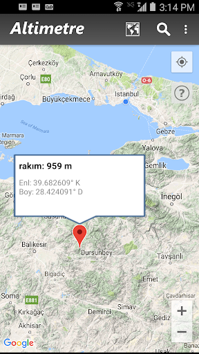 ● Yükseklik Arama: Bir yer adı veya adresi girin ve bu konumdaki deniz seviyesinin üzerinde rakımı alın.
