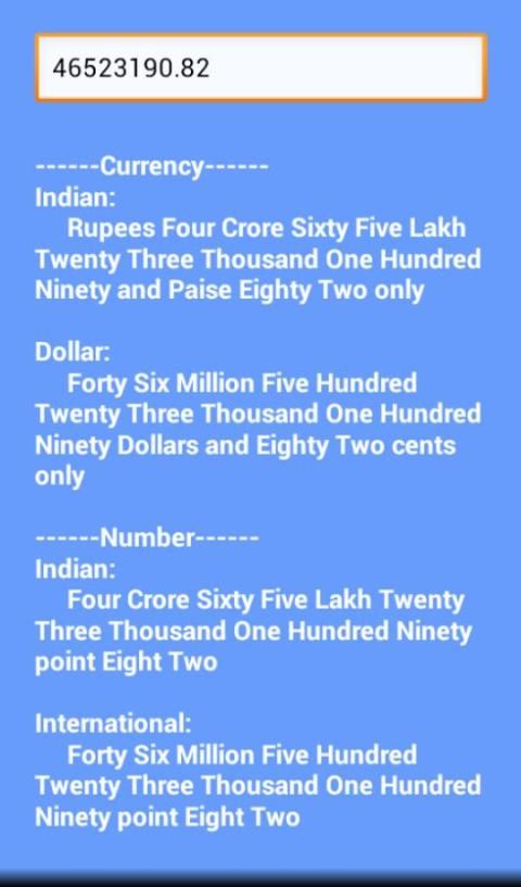 This app helps us to easily see the amount in words by simply typing the numeric value of the amount.