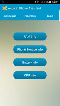 Cache Cleaner, Phone Monitor will Monitor status of CPU, RAM, ROM/Phone Storage, SD Card and Battery.