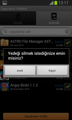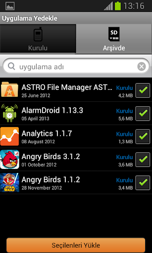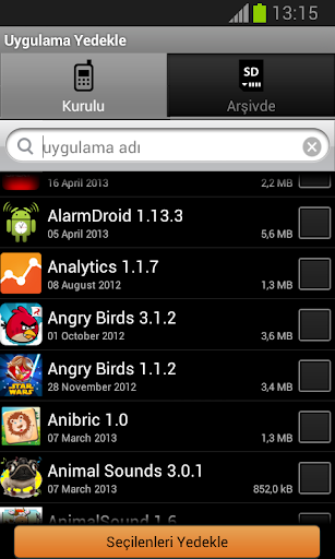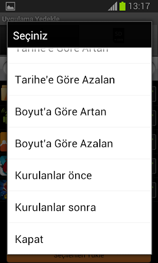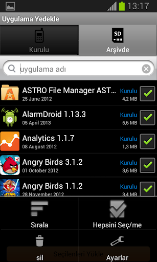 Telefonunuzda bulunan uygulamaları "Uygulama Yedekle" ile yedekleyip daha sonra tekrar kurabilirsiniz.