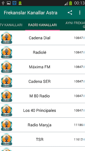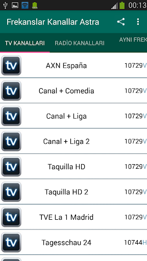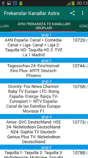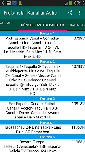 Astra 1KR / Astra 1L / Astra 1M / Astra 1N: aynı yörüngede 19.2 ° Doğu aşağıdaki uydular tüm frekanslar.