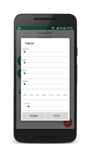 * Dakika, saat, gün, hafta ve haftanın günlerine göre tekrarlama seçenekleri